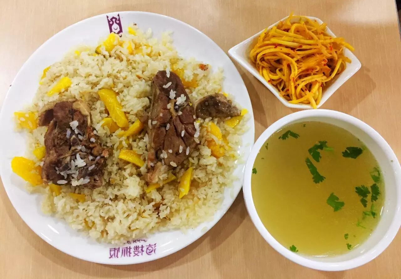 ★主厨推荐:我们选用的是黑龙江产的大米,用热水泡15分钟。萝卜选用的是新疆产量很少的黄萝卜而不是胡萝卜,黄萝卜俗称“小人参”营养丰富。将泡好的大米与黄萝卜用铁锅蒸1个多小时,大米便吸收了烧制黄萝卜的油汁。羊肉是选用整羊的肉质,有羊脖子、羊腿肉、碎肉混合在一起。