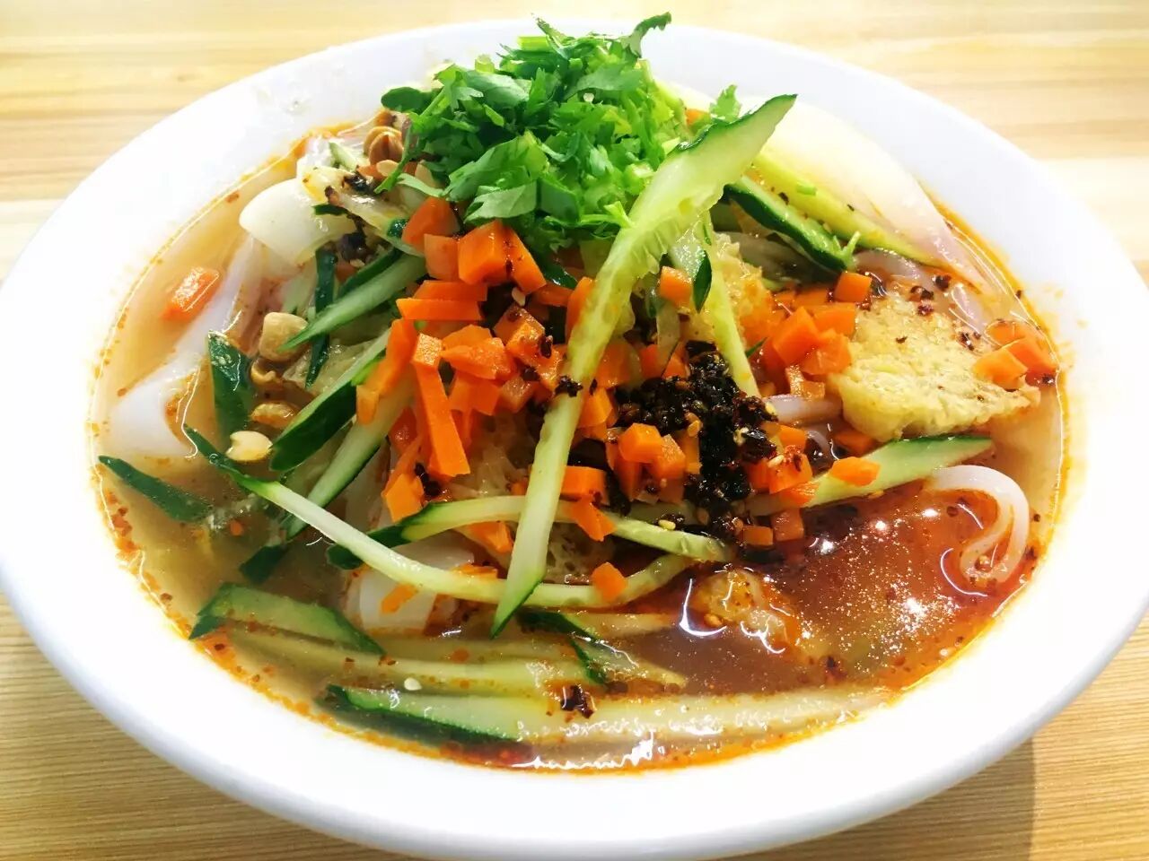 ☆品鉴团点评:凉皮比较筋道,汤内油比较少,但味道并不单一,吃起来很爽口。