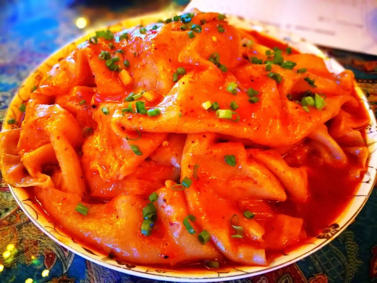 ☆品鉴团点评:牛肉粘卷子摆盘传承了新疆的大盘系列,极具地域特色。开锅的手工面浸润着菜和牛肉的香气,劲道爽滑,菜味醇厚,汤汁浓郁。