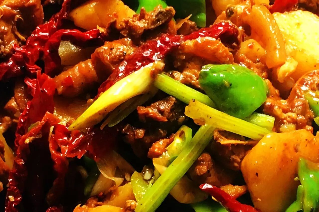 ★主厨推荐:我们用散养鸡搭配经典的土豆、青椒、魔芋、芹菜,提味的关键是选用新疆安集海的线椒,皮薄肉厚、色泽鲜红、辛辣适中。如果有特别爱吃辣的顾客,我们则会拿出私藏的尼泊尔的干辣椒,保证能满足顾客的味蕾。