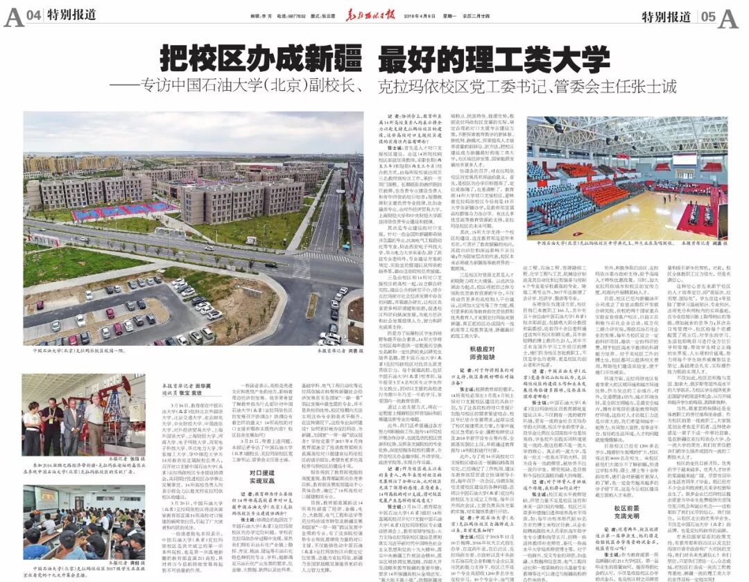 一些读者致电本报表示,中国石油大学(北京)克拉玛依校区是我市成立的第一所本科院校,也是第一所落地新疆的教育部直属211高校,其对我市今后的持续发展将起到不可估量的作用。