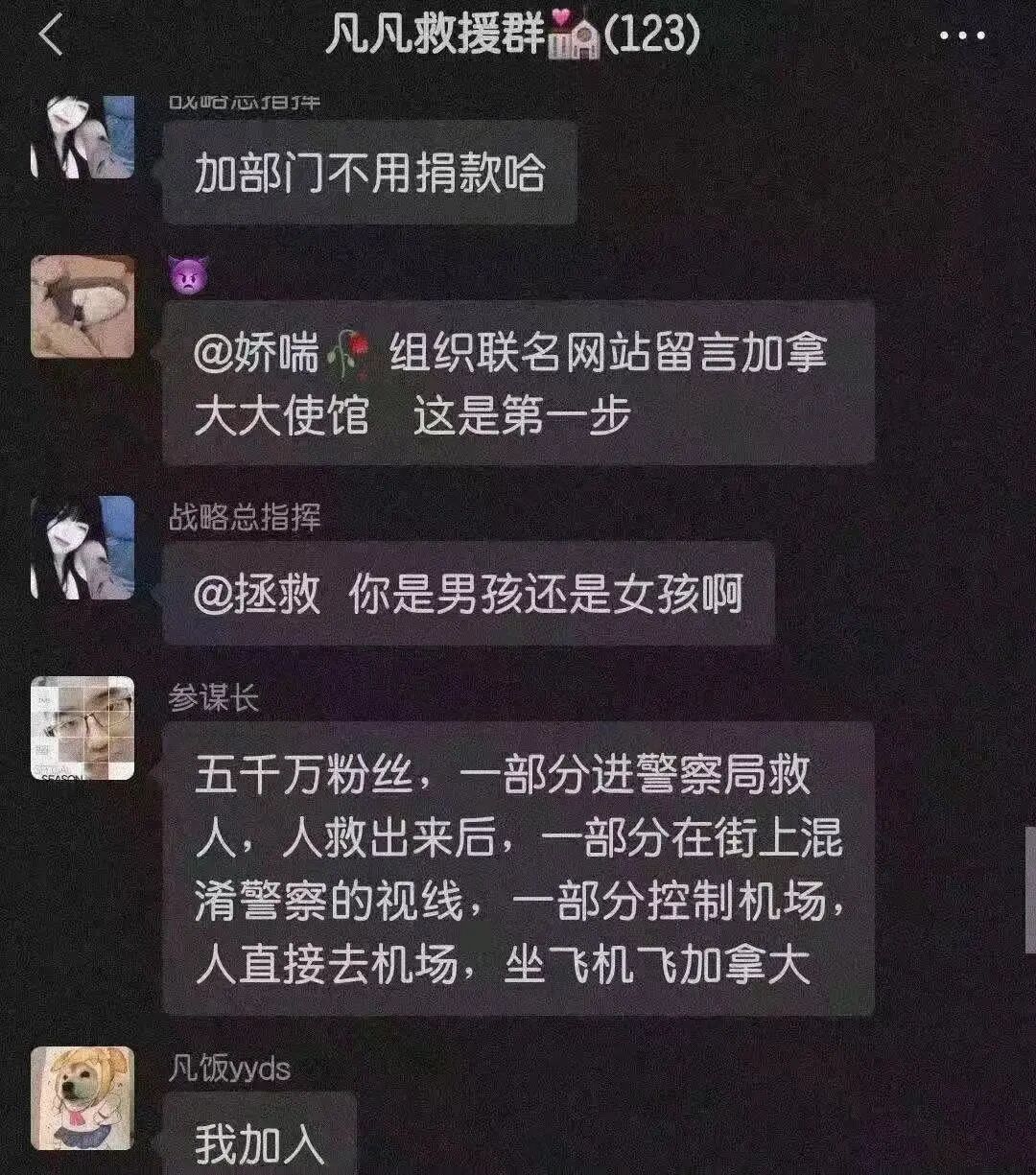 这还不算什么,更为疯狂的是吴亦凡的一些粉丝在微博上声称要劫狱,在多个吴亦凡救援群商量行动细节。这些让我们看到了娱乐明星粉丝们可怕的组织力、凝聚力、行动力、破坏力。