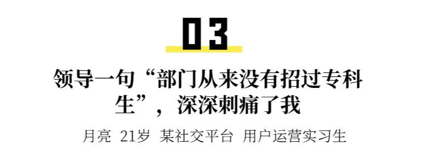 有些专科出身的朋友可能觉得自己学历不如人,就处处不如人,但我从不这样想。我觉得是他们内心不愿意承认,自己并没有为目标付出足够的努力,就把借口都推到学历身上。