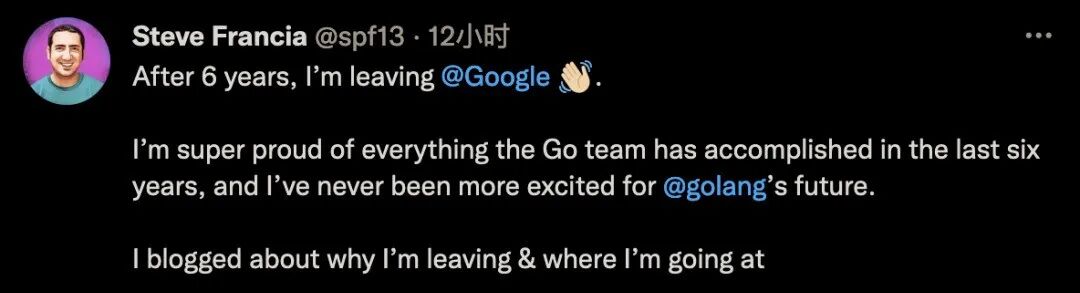 Steve Francia 在 2016 年 9 月宣布加入 Go 团队,至今已有 6 年,这次决定离职是因为感到自己在 Go 项目上“停滞不前”,已经很久没有学习,所以接下来他要把精力放在数据科学和机器学习领域,并选择加盟美国对冲基金投资公司 Two Sigma。Two Sigma 以使用包括人工智能、机器学习、分布式计算等多种科技方法管理投资策略著称。