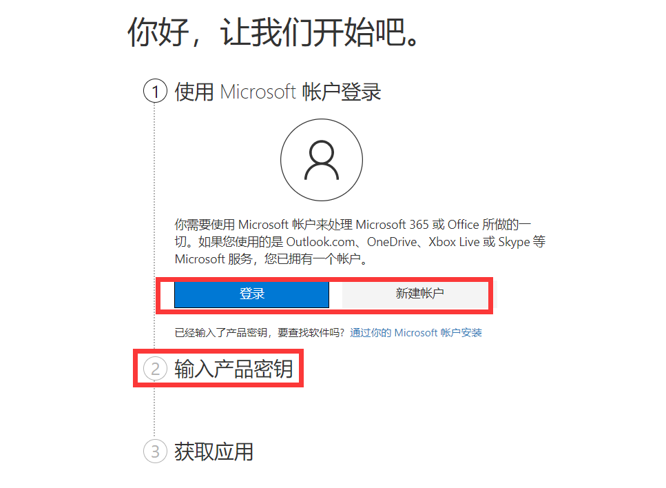 绑定密钥后进入微软账号的个人账户,点击服务和订阅即可看到已购买的Office版本,点击安装,然后根据提示操作即可。