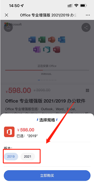 Step2: 根据个人需求选择购买版本(2019,2021)