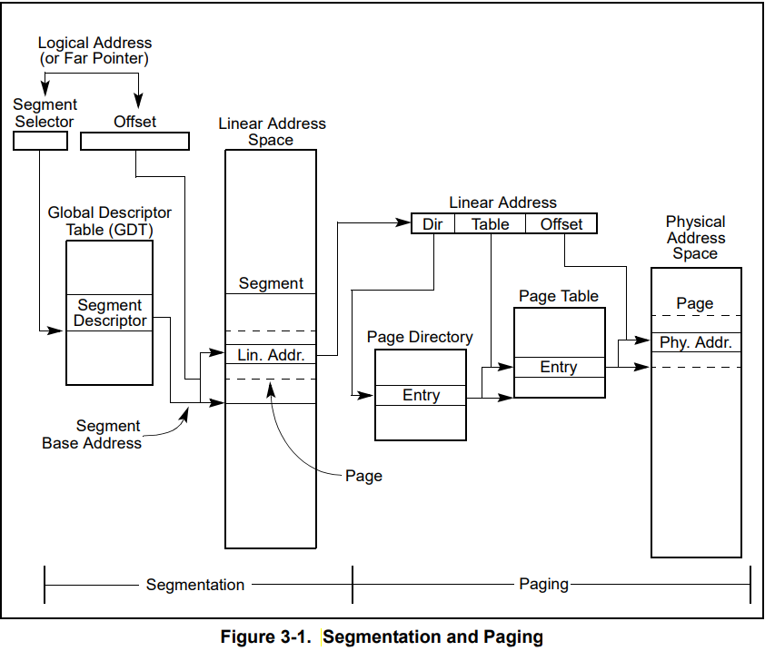 地址转换过程,段级转换(GDT)、页级转换(查页表)