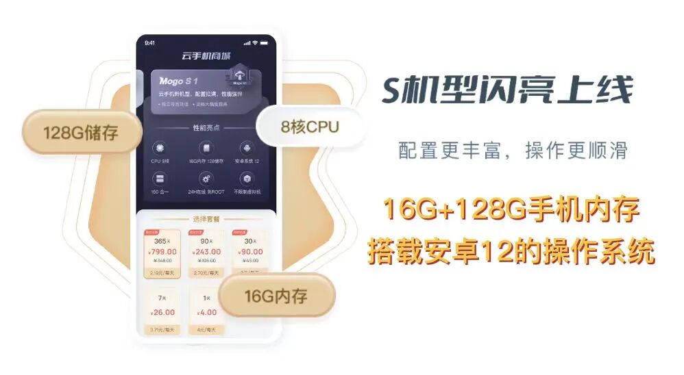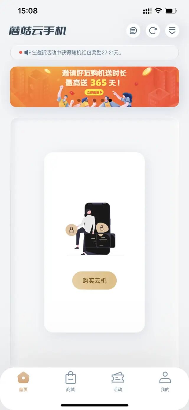 第二步:进入APP,根据需要的数量租赁云手机(PS:目前云手机都是以租赁的方式获取,每天仅需几毛钱/台哦)