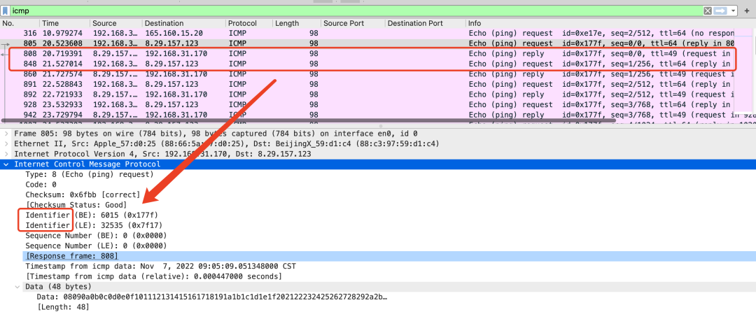 事实上针对ICMP协议,NAT路由器做了特殊处理。ping报文头里有个Identifier的信息,它其实指的是放出ping命令的进程id。