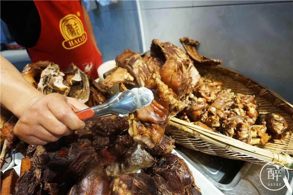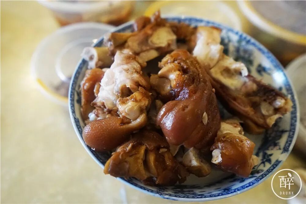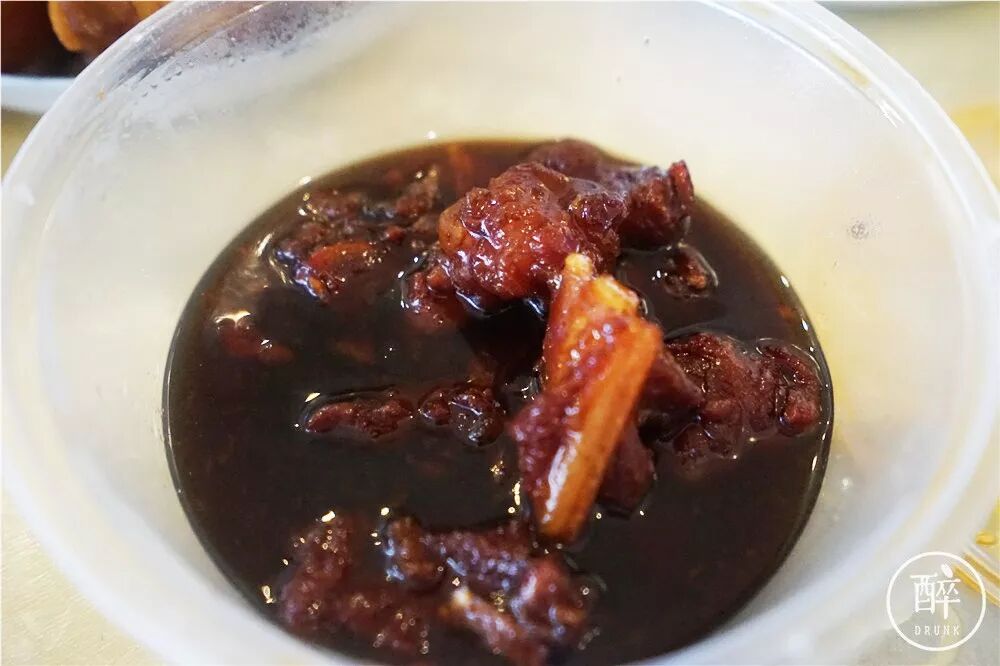 一根宰出来还是非常具体的分量,猪蹄子像是提前火烧过再卤,表皮有一层焦香的嚼劲,蹄筋卤得软硬适中,味道刚刚合适。