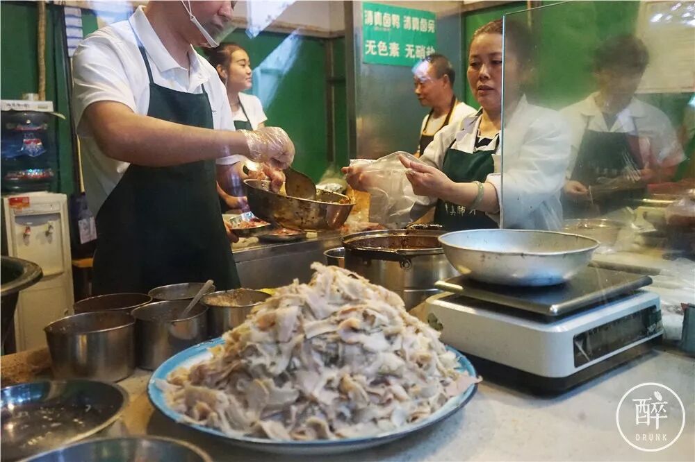 偶然发现的这个小铺子,也是卖卤味的,看到在宰鸭子,新鲜得不得了。看到旁边的丹棱冻粑想起还没吃早饭,索性买了一个。