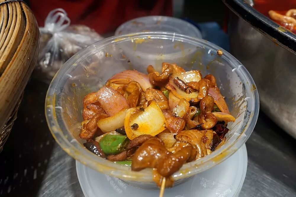 老板超热情,我询问能不能拍点肥肠的照片,笑嘻嘻的说随便拍妹妹,我来帮你夹。
