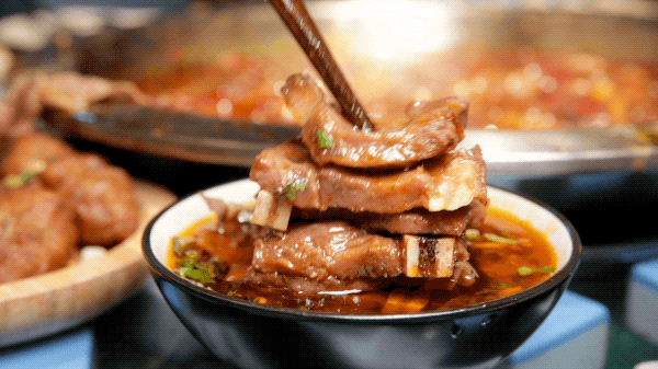 烫一哈的牛小排弹性够够的,肉很嫩气,肉汁也丰富,一口进嘴骨头用舌头一li就下来了,安逸得很。