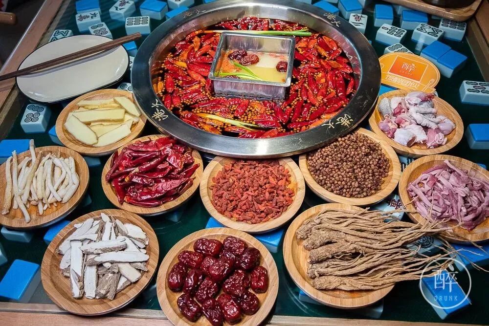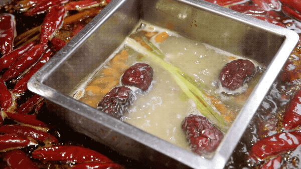 主打的是猪肚鸡汤鸳鸯锅,每天现熬,用了超多原料一起熬制。
