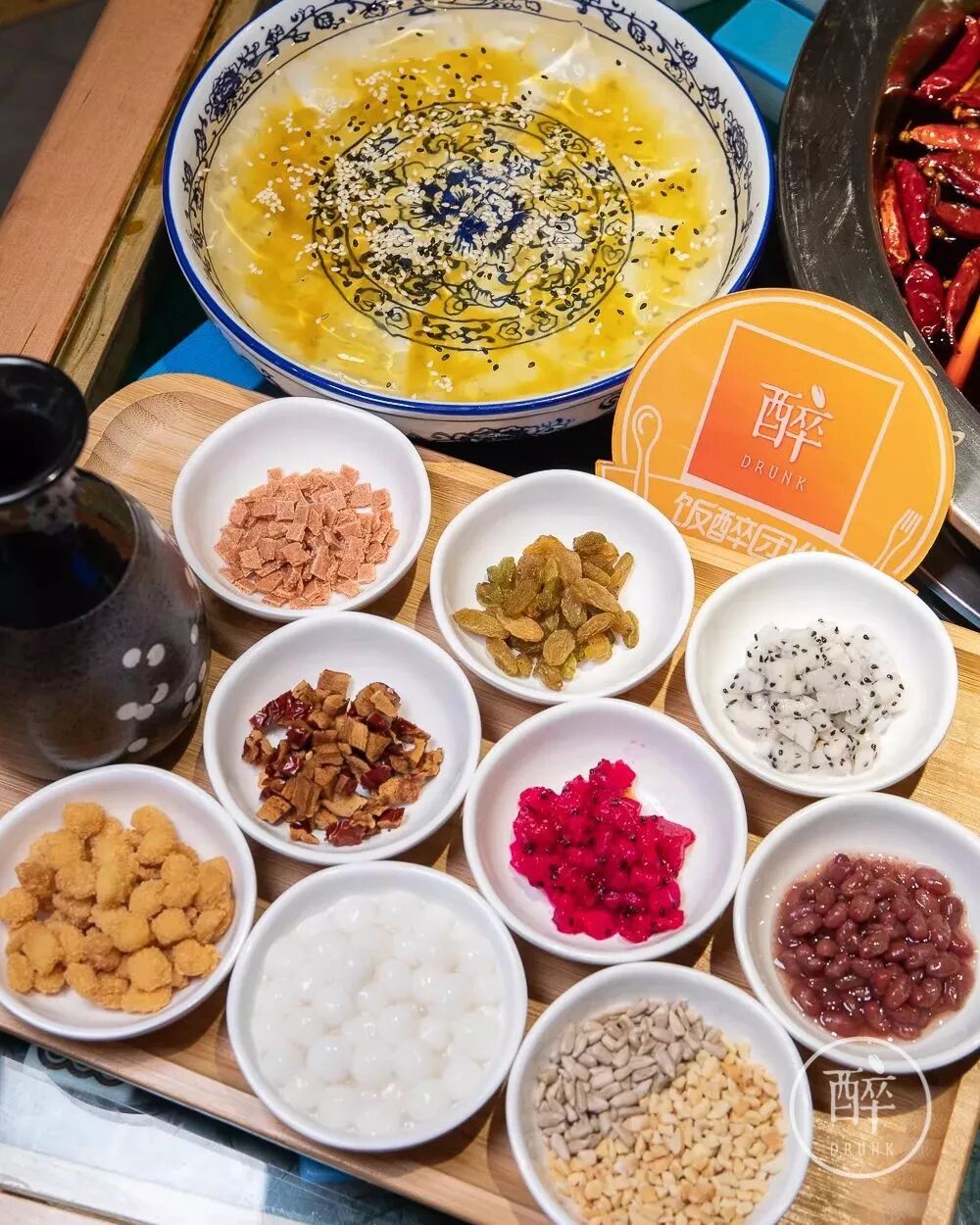 甜品也很有意思,用的老成都喜欢的盖碗茶,要吃再揭开,很有点仪式感在里头。