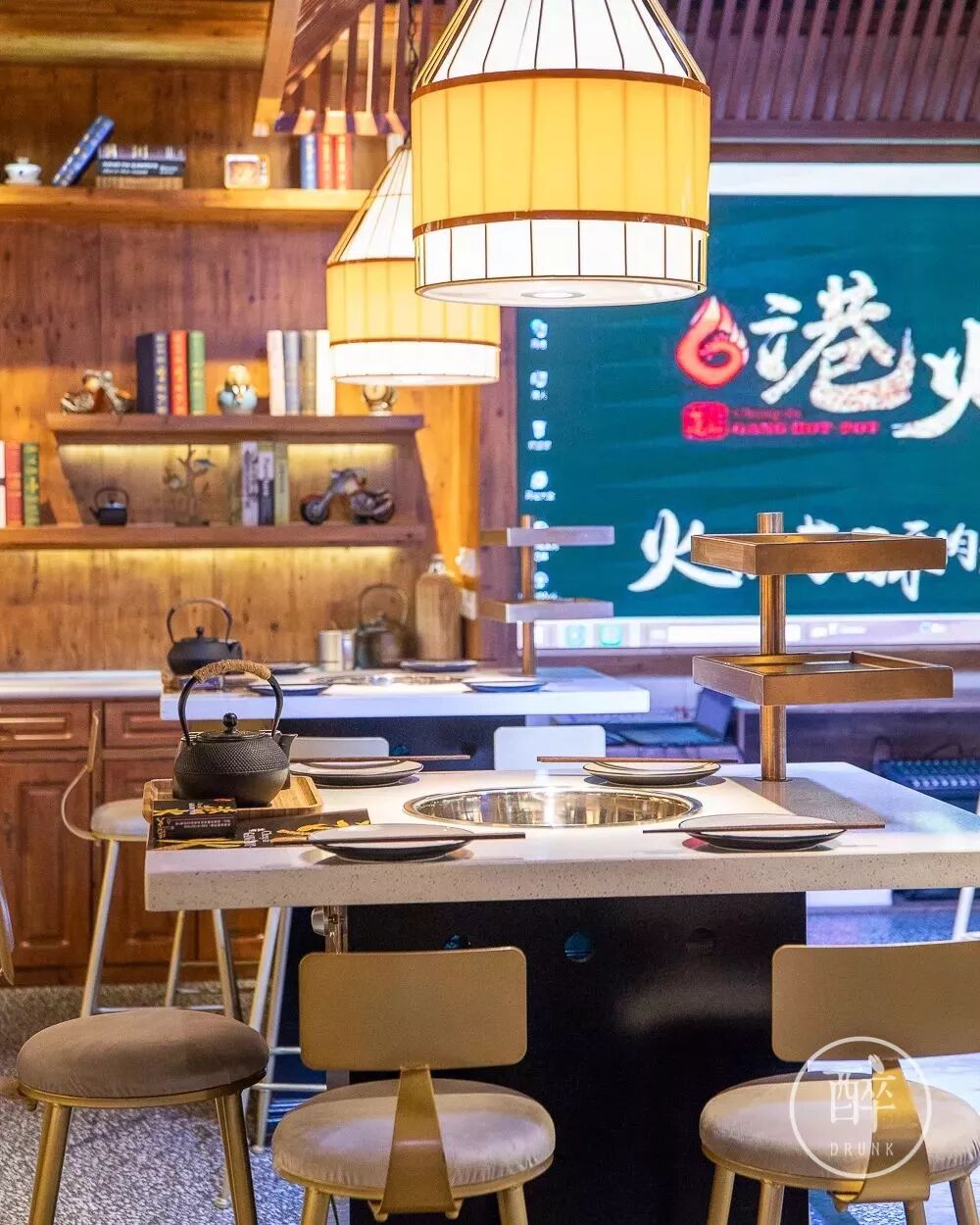 环境是明明亮亮的木质现代风,高板凳、大理石台面、茶壶,请客、自己来吃都不丢范。