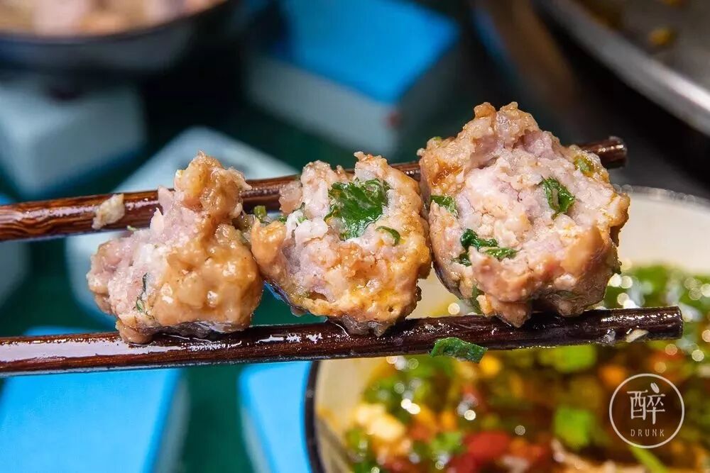 招牌是现场切肉宰肉糜的丸子,肉先切块再切条再宰碎,全程操作都在明档头可见,新鲜又扎实。