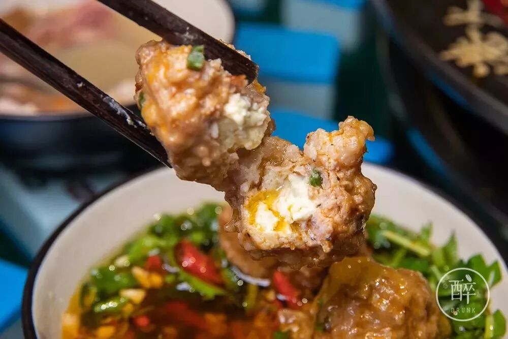 网红芝士的丸子是在明档捏好了端上桌,一整坨芝士暗在丸子里面。