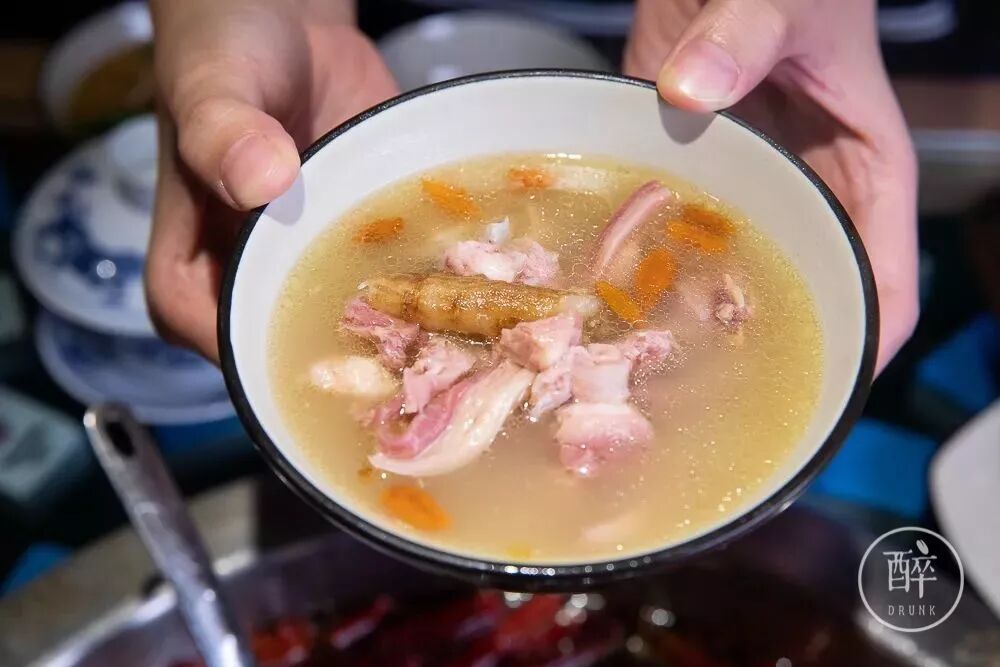 吃火锅前先来一碗汤,xuan得很嘛,怕辣的小伙伴喝汤也可以解辣。