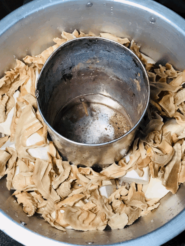 只有长辈掌勺才能吃到的「杂菜」,先把挂面油炸再用豆干和肉来煮。每次能吃一大碗。