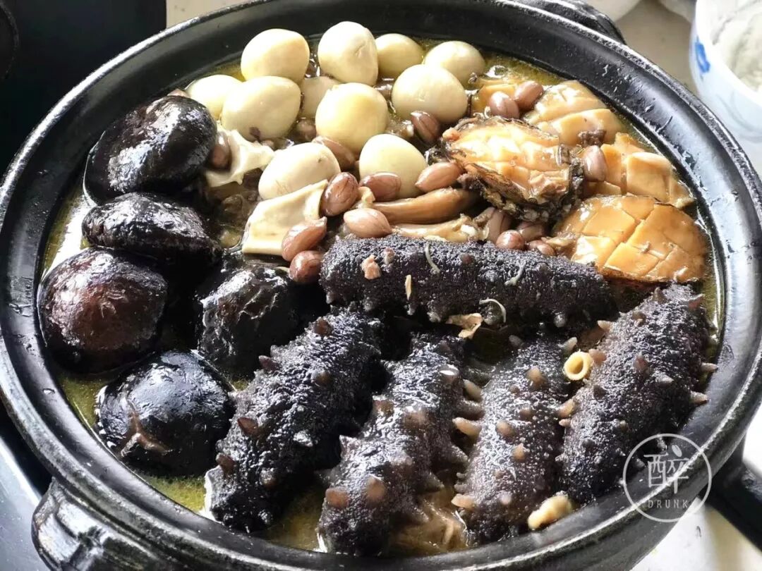 今年弄了不少唬人的快手菜,比如佛跳墙。用的鲜海参和鲜鲍鱼,提前只泡了鱼肚,只要舍得放材料就好吃。