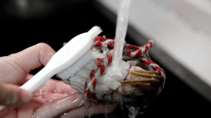 大闸蟹基本上都是干净的,白肚青爪,稍微用刷子刷洗干净。