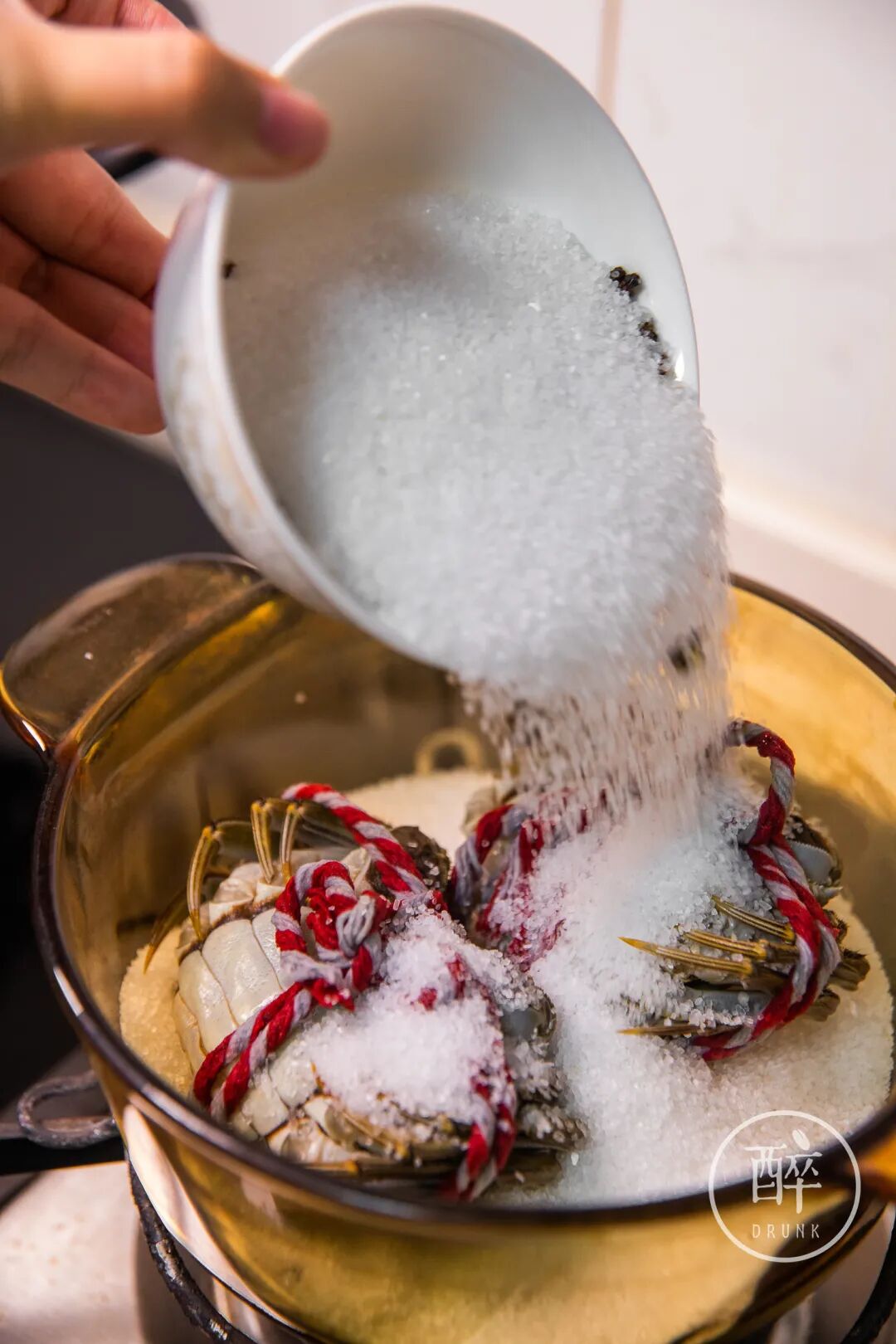 基本上把螃蟹全部盖完,量多量少可以根据用的容器来调整。