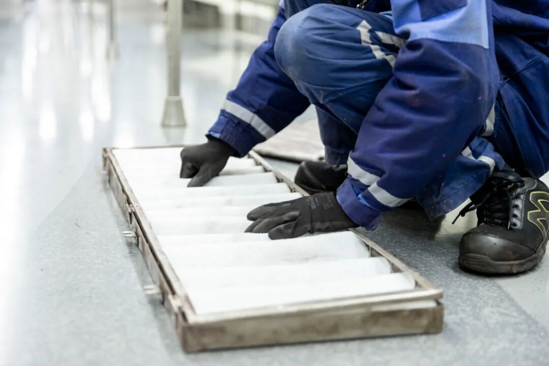 经过辛勤工作的滤网会蒙上一些灰尘,检修人员会帮它清理、消毒。