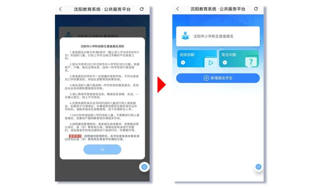 2022年小学新生普查入学报名填报入口有三个,分别为“辽事通”APP、“沈阳政务服务”APP、“盛事通”APP。