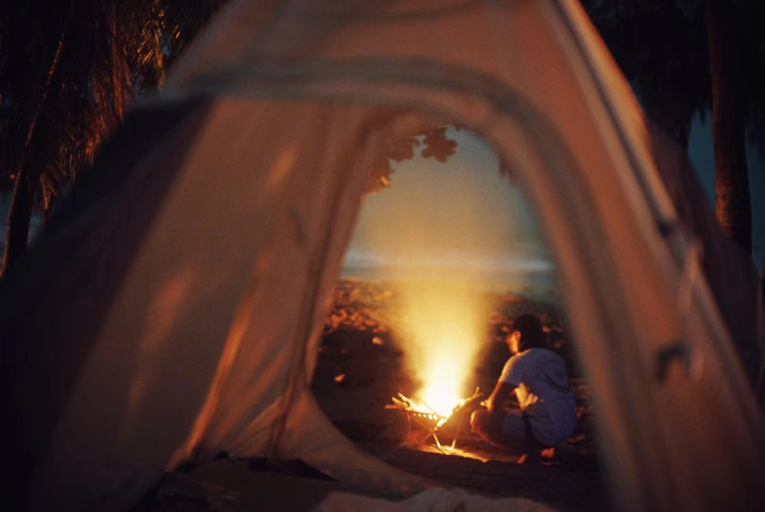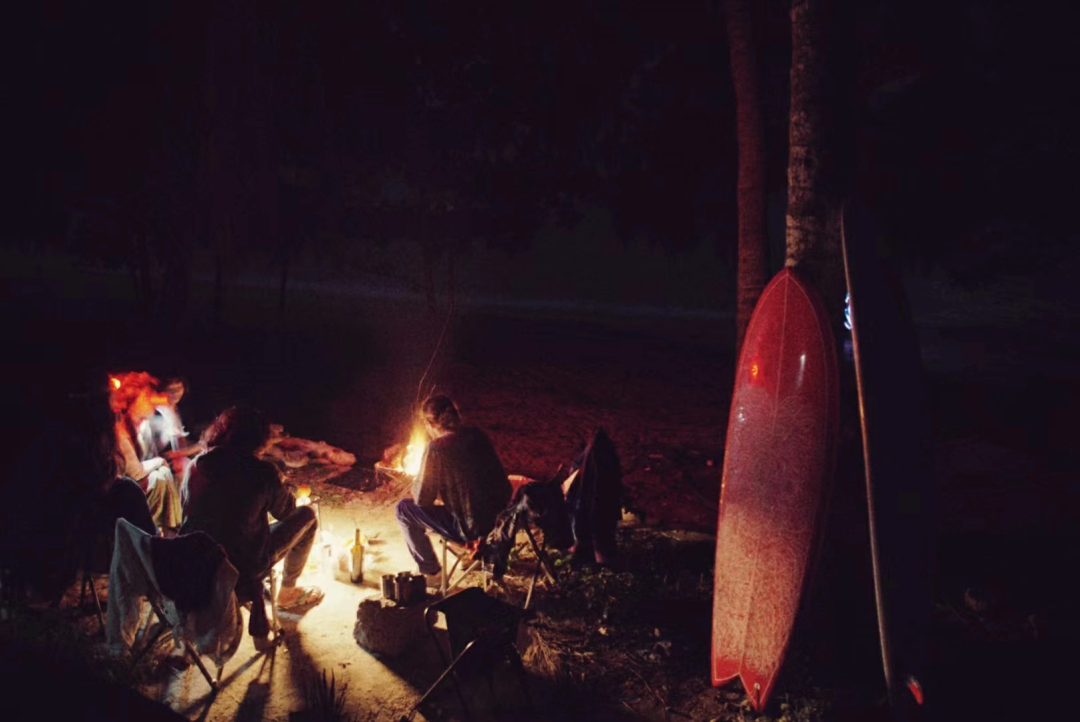 为了不用去租价格离谱的公寓,我们踏破铁鞋寻找合适的落脚地,期间一直扎营在当时仍是秘密浪点的南燕湾,继续风餐露宿的生活,来冲浪的朋友有时会给我们带些物资。12 月底的海南,晚上很冷,我们彻夜生火喝酒,听着日夜不息的海浪声。虽然连着好几天不能洗澡,但我当时觉得没有谁在海南比我们更幸福了,坐拥豪华一线海景和最好的海浪。