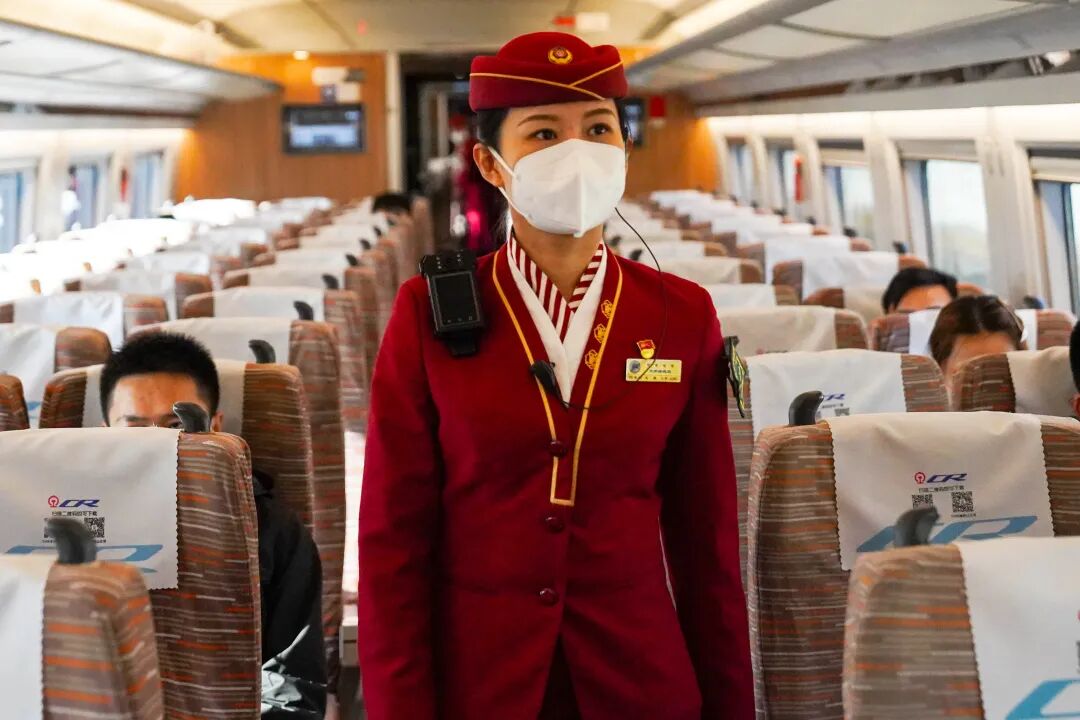 今天值乘C2020次列车,我们用安全优质的服务为新的一年开了个好头。记得疫情初期,我发现一位旅客的口罩破损,便将自己备用的医用口罩送给他,旅客立即起身表示感谢:“在防护物资如此紧张时刻,你主动送我的不仅仅是一副口罩。” 他的话,让我更加坚定做好高铁服务工作的自信和决心。