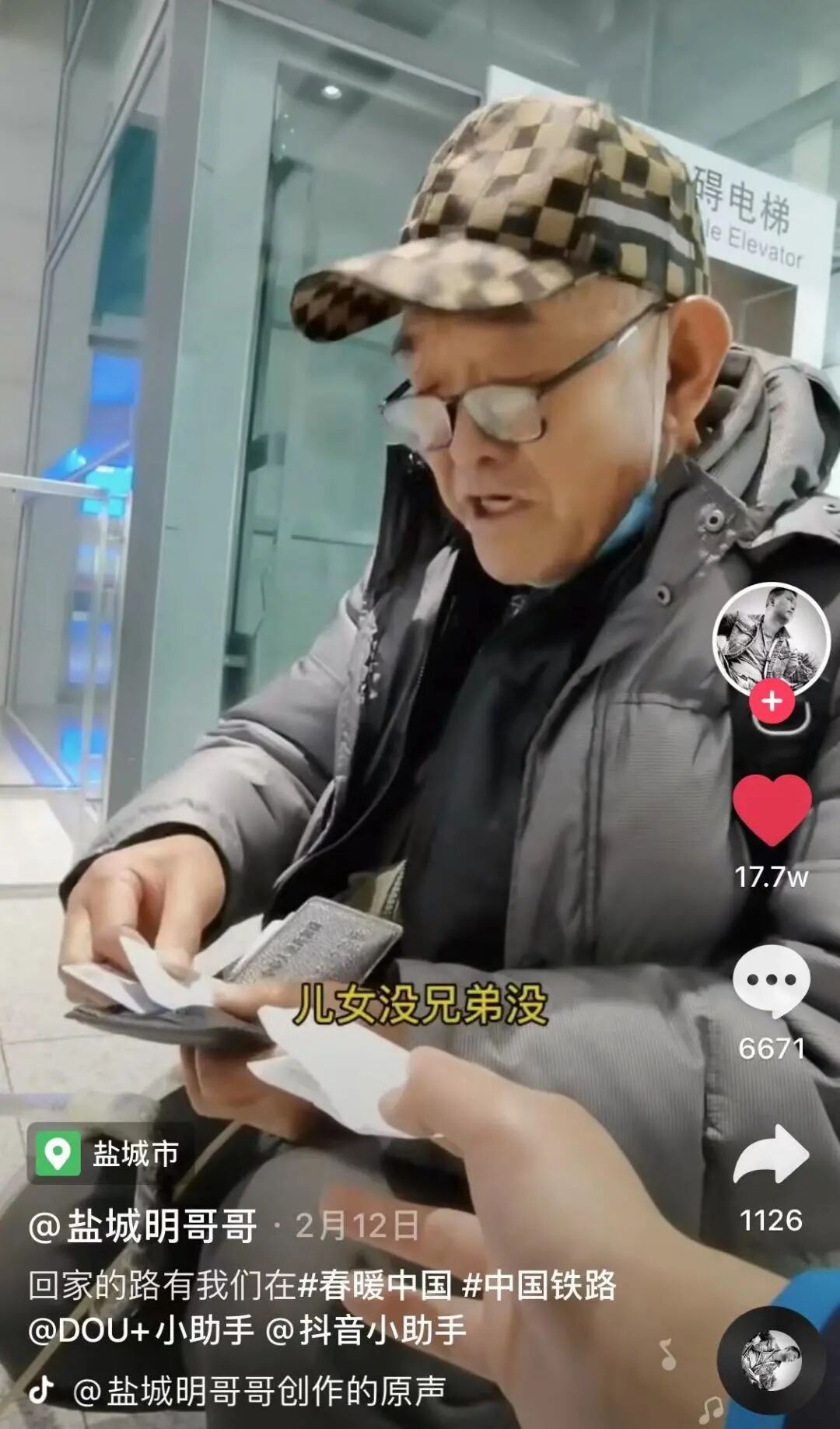 一位老人独自坐在出站口