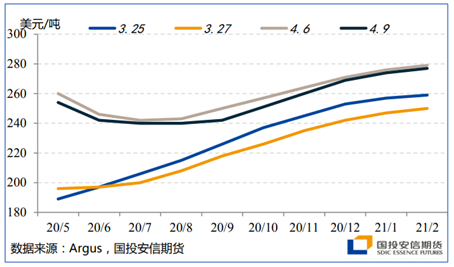 大商所目前挂牌LPG期货为远月旺季合约,市场情绪对其影响更大,价格弹性较现货市场更强。我们认为在OPEC+及G20减产协议未超预期的背景下,后市缺乏潜在利多,当前盘面对现货升水的幅度难以继续抬升。而现货需求显著恢复迹象未现,3月低价进口货源陆续到港后将进一步施压目前弱平衡的供需面。炼油利润好转导致现货供给和需求的恢复速度错配,现货市场在筑底上探过程中短期承压,有小幅回调的可能,届时若能打压盘面升水幅度,则有较好的安全边际再次布局多单。能源首席 高明宇 投资咨询号:Z0012038