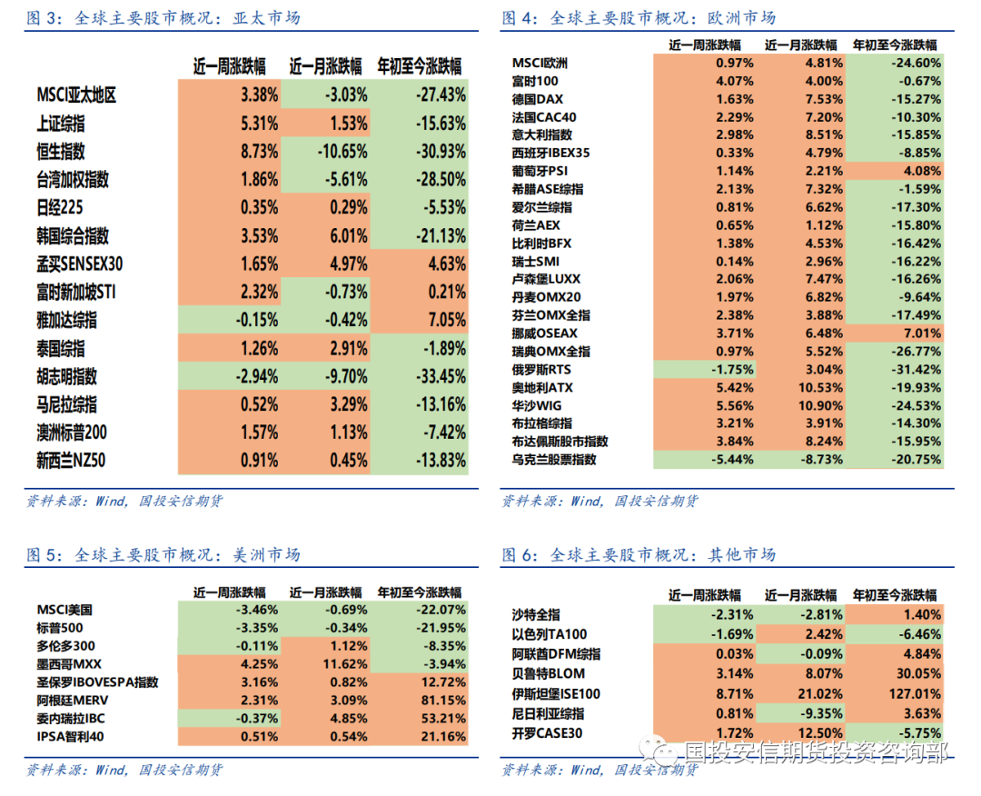全球大类资产表现情况:股市分化 债市回落 商品上涨