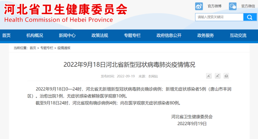 截至9月18日24时,河北省现有确诊病例4例;尚在医学观察无症状感染者80例。