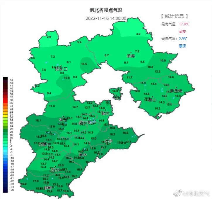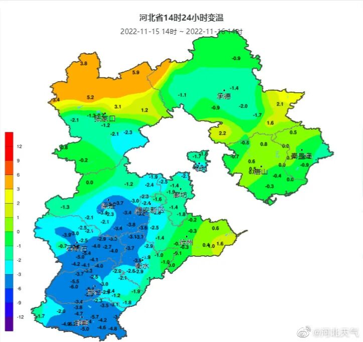今天傍晚到夜间,全省晴间多云。最低温度,张家口、承德、保定西北部-11~-1℃,其他地区0~6℃。明天早晨,平原中南部部分地区有雾。