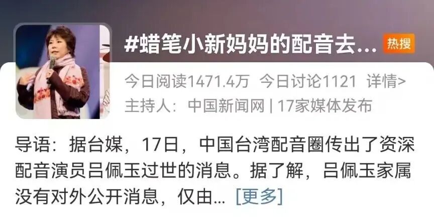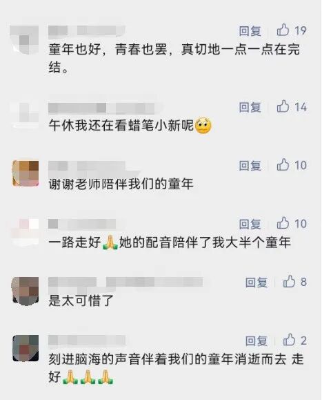 而对于这个噩耗,许多网友都相当震惊:“她的声音真的太经典了”“太突然了,有点接受不了”“谢谢老师陪伴我们的童年”,还有网友直接发布蜡笔小新妈妈美冴的台词“应该是我回来了才对”,引得网友一片泪奔:“完全不记得剧情,可是为什么我的脑子念出来了?”“看到这句话就能想起老师的声音!老师一路走好!”