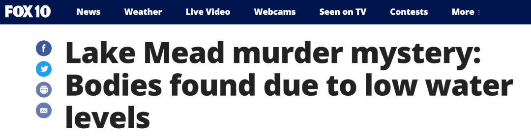 多家媒体报道,随着近日米德湖水位骤降,已有多具尸骸从湖底显现,其中一些人的死亡时间超过几十年,有明显谋杀痕迹。
