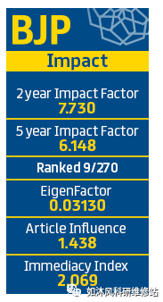 《英国药理学期刊》代表英国药理学学会出版,是一本基础广泛的期刊,在实验药理学的各个方面都具有领先的国际报道。它出版高质量的原始研究报告和权威评论,小型评论,评论和致编辑的信。每年出版一系列主题课题,并且每两年出版一次必读的特别版《简明药理学指南》。该杂志被公认为该领域的领先出版物之一。它仅在线上,通过其OnlineOpen程序发布开放访问研究,并且每两周发布一次。