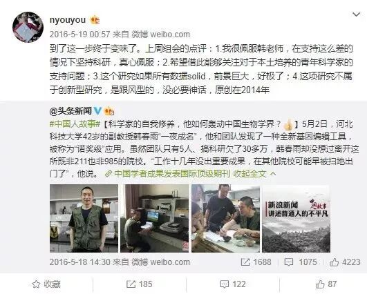 韩春雨副教授一夜成名的那篇发表在《Nature》子刊的论文,目前在一片争议中撤稿