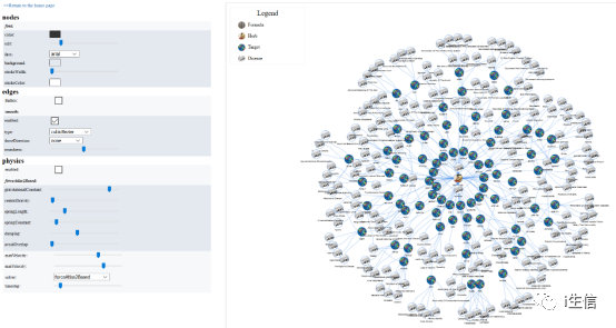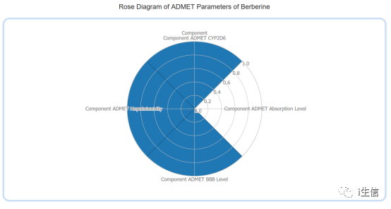 如果要找的是化合物或者其他类别,一样用上述方法选择对应类别查找导出。对化合物的查询将展示化合物的基本信息以及相关的靶点、中药、疾病和复方,以及ADMET成药性分析。网络图展示同前。