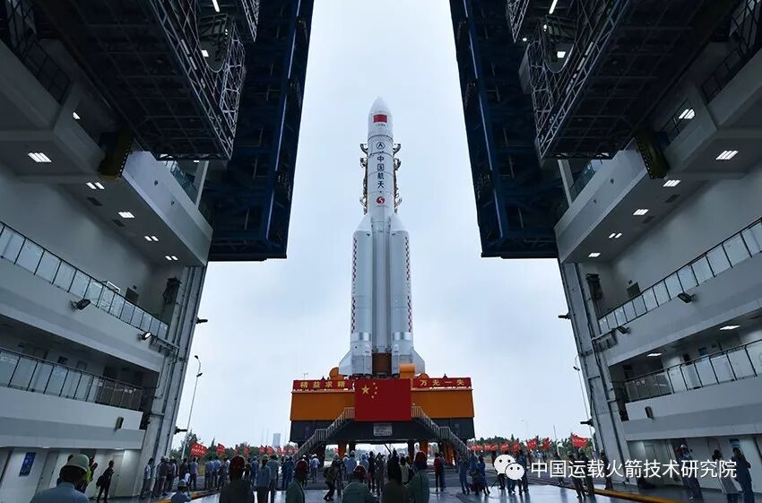 今天上午,长征五号遥三火箭在海南文昌发射场亮相,从技术区垂直转运至发射区,计划于12月底前后择机实施飞行试验任务。