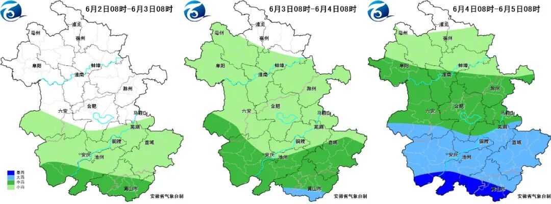 预计今天大别山区和沿江江南局部地区中雨。3日至5日我省有一次较明显降水过程,淮河以南部分地区伴有雷暴大风、短时强降水等强对流天气;其中4日江淮之间南部和江南部分地区中到大雨,局部暴雨。6日至11日全省以多云天气为主。