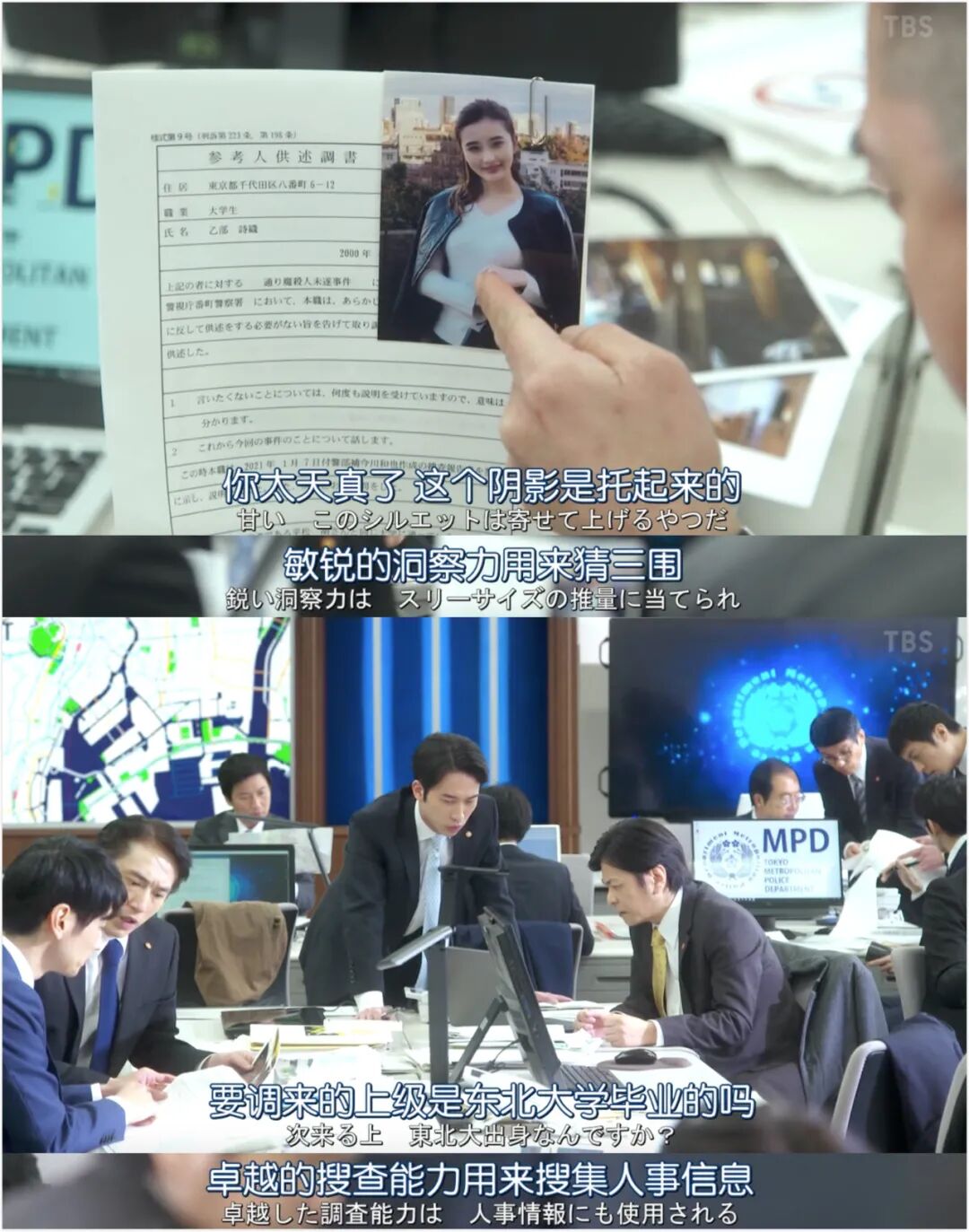 问到不在场证明时,他却说自己当晚在散步,持续了有三个小时之长。不仅如此,鉴定科提供的一系列报告,更加证实了望月的猜测。在望月第一次见到日高的时候,他就戴着一副卡其色皮革手套。同时在事发当天,日高并不像他自己所说“散步了三个小时”,而是坐出租车来到了死者家附近。在过了几个小时之后,监控录像还记录下了他骑共享单车的画面。现在缺少的,就是最直接的杀人证据,皮革手套成为了关键。势在必得的望月急忙地追踪日高的轨迹,试图从日高手里夺来手套。就晚了一秒,望月眼睁睁地看着日高,把手套从天桥上扔了下去。一番厮打的望月和日高再次睁开眼,已经躺在了医院里。等等,高智商杀人犯日高和正义女刑警望月身份互换,也就是说——为了让自己的灵魂生存下去,望月只能被迫听从日高的安排,帮助日高逃脱杀人嫌疑,洗清罪名。不仅要习惯这幅陌生的男儿身,还要学会处理复杂的公司事务,担起社长的身份。心情烦躁的时候,还不能喝酒吃杏仁,因为日高有严重的过敏症。非但案子没破,望月只能看着“凶手”逍遥法外,自己还成为了杀人犯的帮凶。监视器里的八卷问道:“望月前辈,你和日高互换身体了对吧?”不过短短两集的功夫,杀人案就已经接近水落石出,节奏快到让人不敢相信。在调查取证过程中,八卷找到了日高在美国时的研究室同学,对话中了解到这已经不是日高第一次被警察调查。在波士顿的时候,日高就曾被怀疑是连环杀人案的凶手。由于证据不足,日高也没有被起诉,为了逃避司法手段的日高也因此归国。
