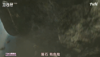 一帮人在攀爬高山,突然遭遇落石,万分紧张。