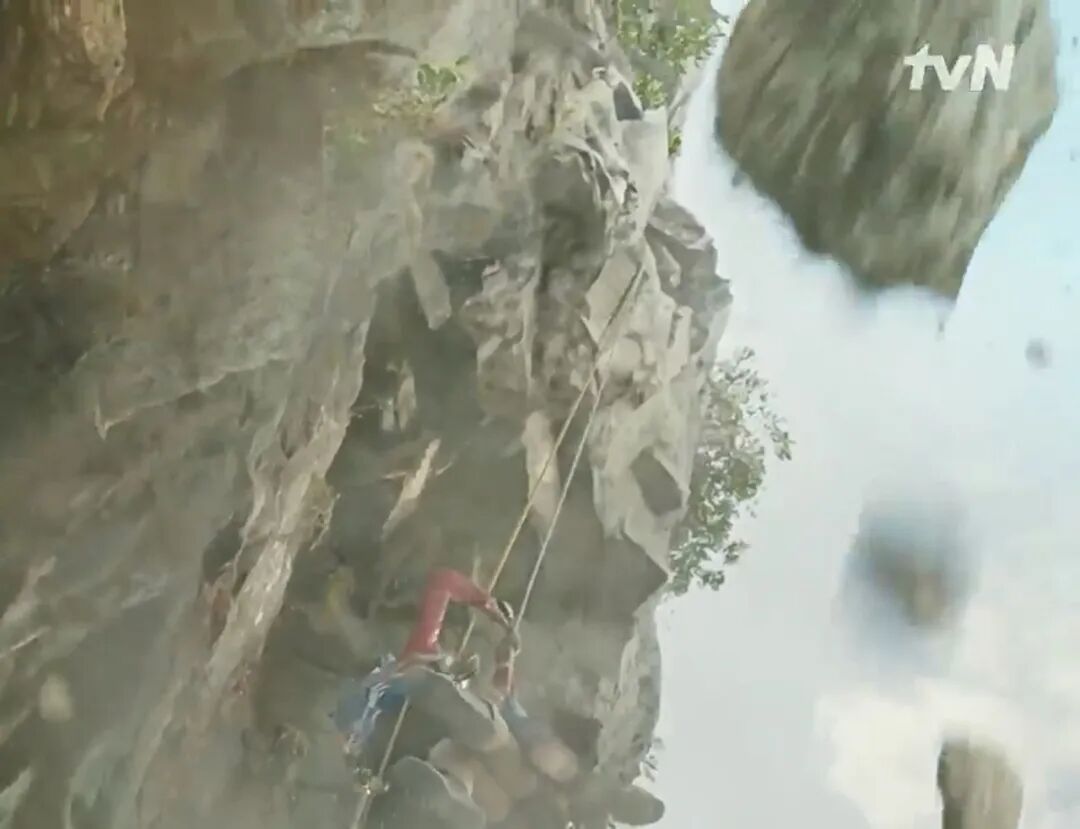 果不其然,男主姜贤祖从尝试登山时,从高处掉落,差点摔死。