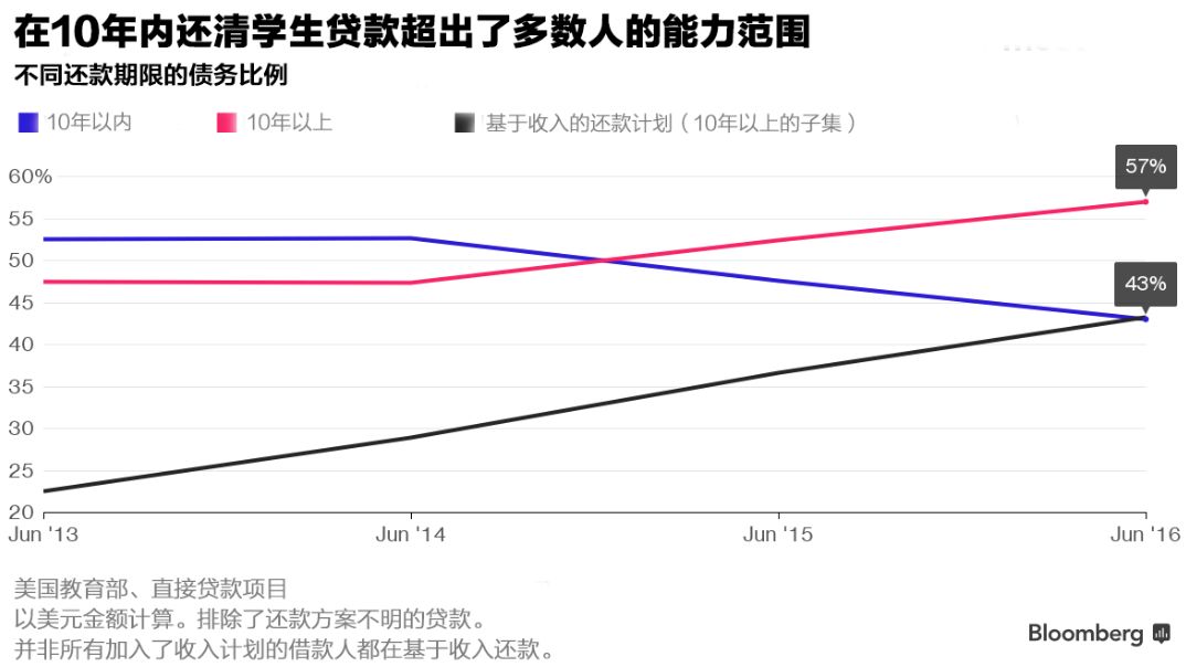 57%学生贷款要10年以上才能还清。