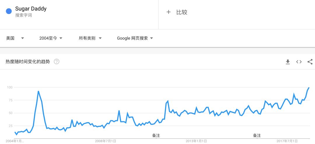 Sugar Daddy在美国的Google搜索热度趋势一路上涨