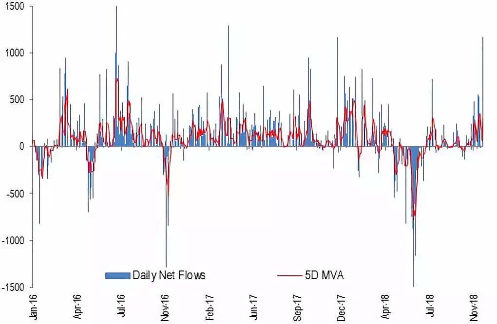 看看上图中11月的蓝色一柱擎天,那就代表了11月以来资金飞速流入新兴市场。