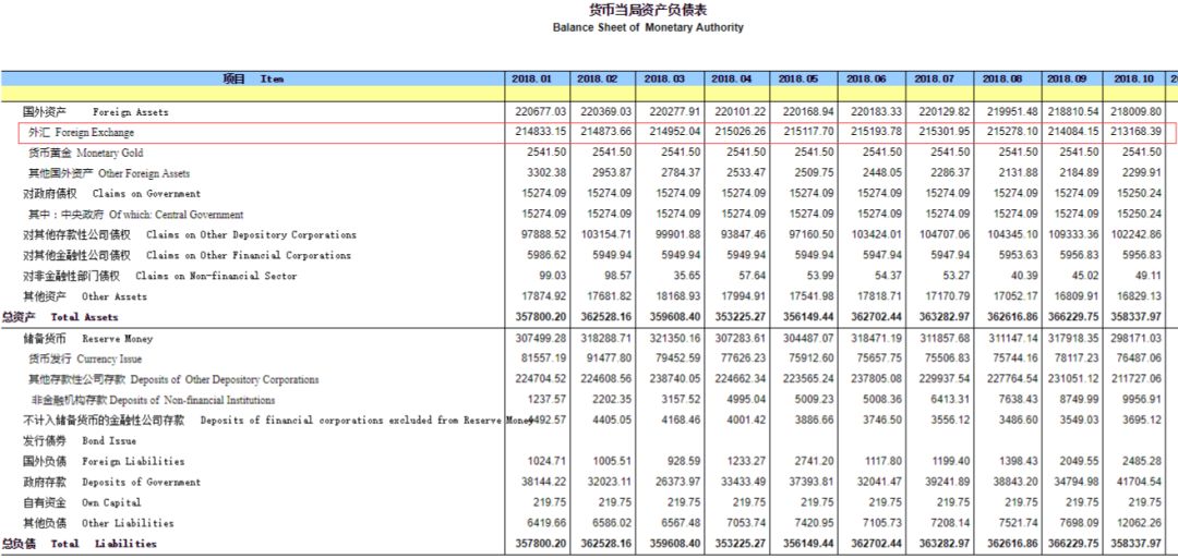 11月22日,央行公布数据显示,中国10月末央行口径外汇占款21.3万亿元,环比下滑915.76亿元,连续第三个月环比减少,创2011年1月以来最低水平。